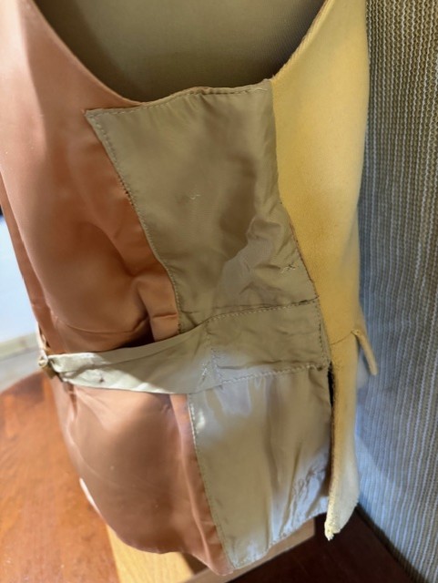 Longer, flared skirt, slightly faded, right side has been repaired